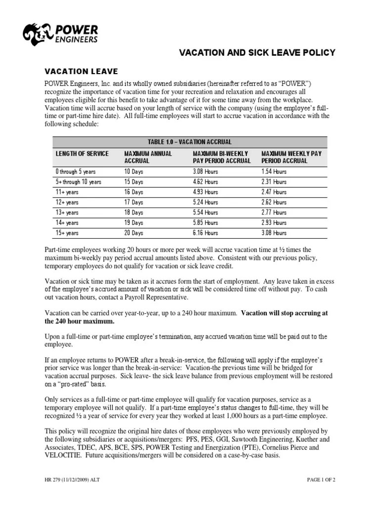 Vacation and Sick Leave Policy PDF Accrual Sick Leave