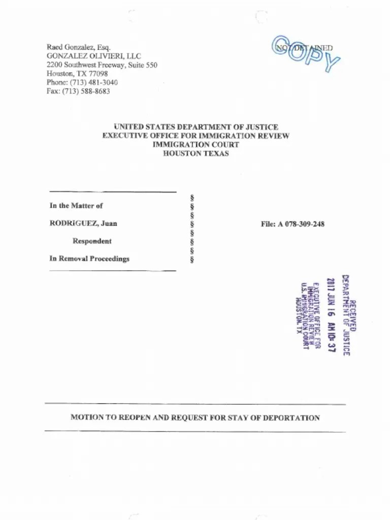 Motion to Reopen and Request for Stay of Deportation
