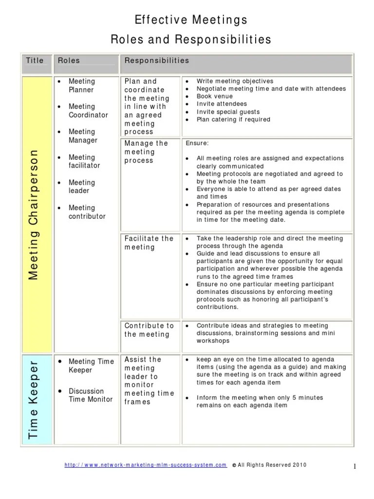 Roles And Responsibilities Template