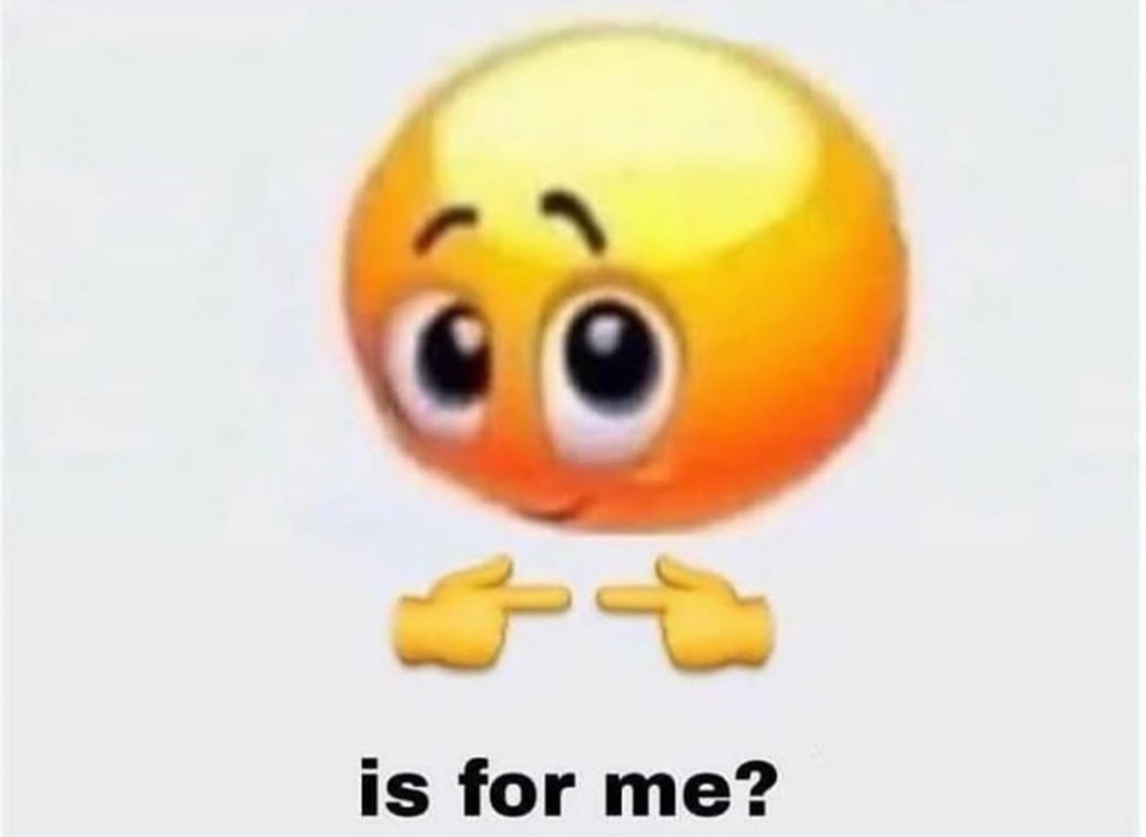 Is For Me Meme Template - Web the piñata farms meme generator is a fast, easy, free meme maker with thousands of meme templates that you can edit and. Press the ← and → keys to navigate the gallery , 'g' to. Web with canva’s meme templates, create engaging and enjoyable memes you can use for your reactions or social media posts. Refers to an image macro based on an image combining a shy emoji and the two fingers touching emoji combination, captioned is for me? the catchphrase saw use years prior to the popularity of the macro format as a part of lolspeak. Launch canva and search for meme to start your design project. Galaxy brain 'you didn't have to cut me off' meme template. Use an image from your device computer.