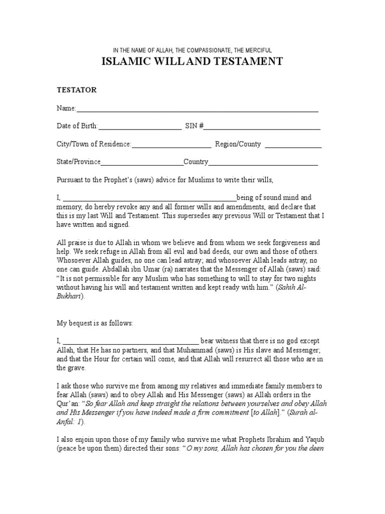 Web islamic will and testament. This guide contains within it a legally valid diy islamic will template, which can be completed reasonably easily. Web islamic will template : Why make an islamic will?