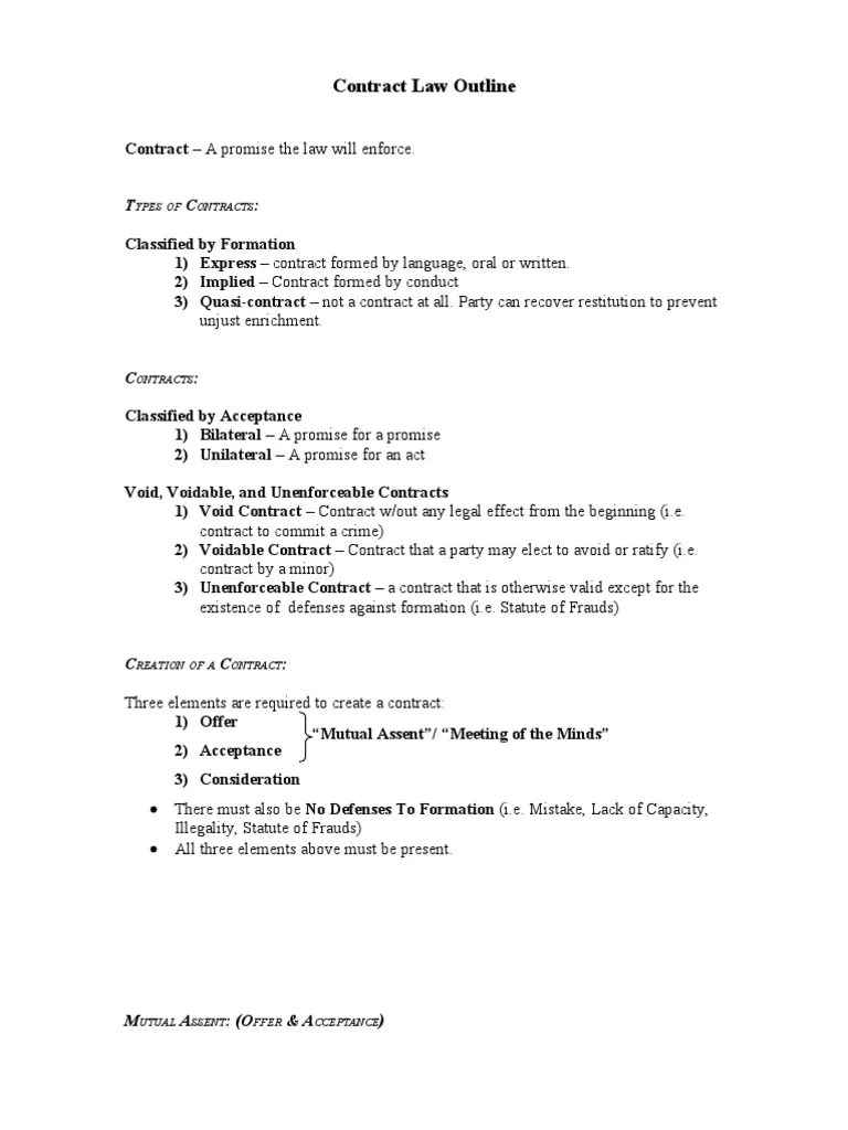 Contract Law Outline PDF Offer And Acceptance Contractual Term