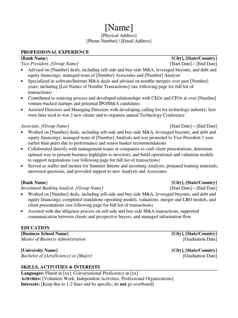 Web download this proven investment banking resume template in word and pdf formats. Web google docs template #1. Web jump to a template: Mergers and acquisitions (m&a) refer to the. No need to think about design details.