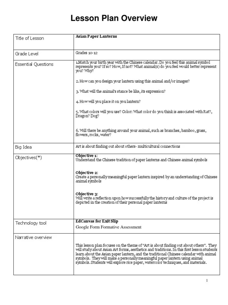 Visual Arts Lesson Plan Templates at