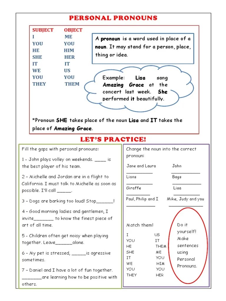 Personal Pronouns Worksheet Templates Layouts 109153 PDF Pronoun