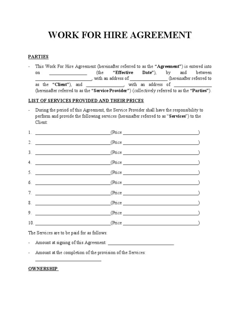 Work for Hire Agreement Template Fill Out, Sign Online and Download