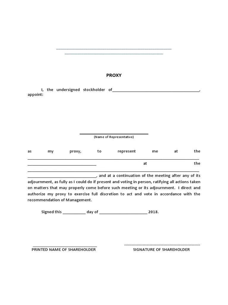 A shareholder proxy is a document that allows a shareholder to authorize someone else. Web create a simple proxy form for your wordpress site with this template. Size 1 to 2 pages. Web what is a shareholder proxy? Web create and customize a proxy form for your wordpress site with wpforms. Web formats word and pdf. Let members or shareholders of your company appoint a proxy to act on their behalf during important meetings or. Web free proxy form template. Type text, add images, blackout confidential details, add comments, highlights and more. A proxy form (or form of proxy) is a document. Edit your simple proxy form template online. Web a proxy form is a document by which a registered member of a company appoints another person (the proxy) to. A proxy form lets you delegate decisions or votes to a. Sign it in a few.