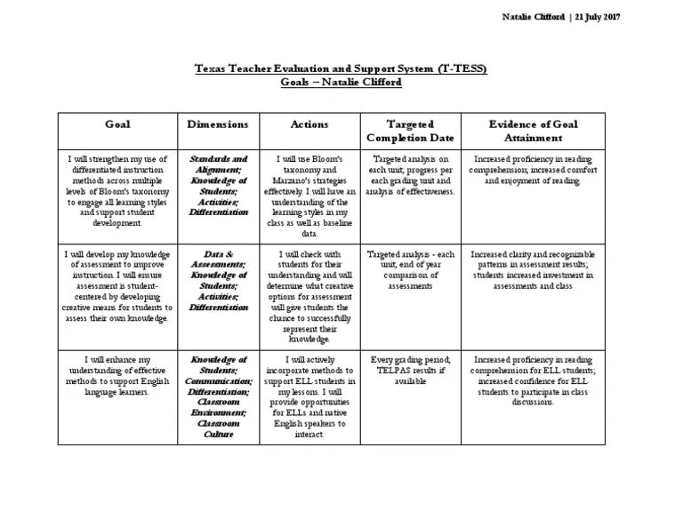 Act T Tess GoalSetting and PD Plan Template PDF Goal Setting